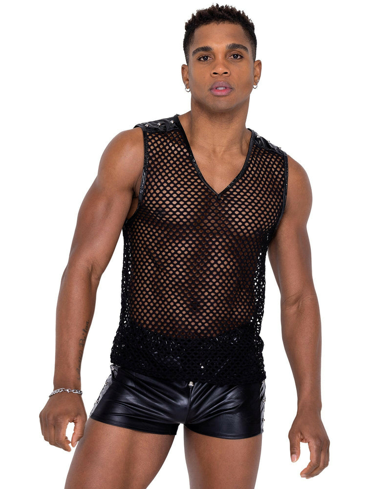 Roma Mens Fishnet Cropped Tank Top - Rave & Festival Wear