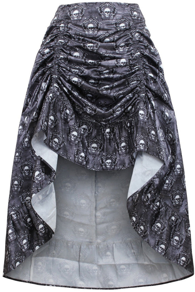 Black Satin & Lace Gothic Long Hi Low Bustle Skirt