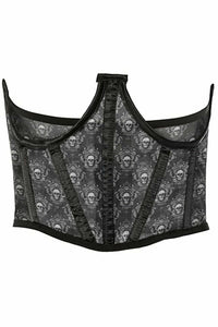 Lavish Black & White Skull Mesh Open Cup Waist Cincher
