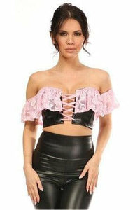 Lavish Lt Pink Lace & Faux Leather Bustier Top
