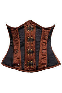 Top Drawer Black & Brown Steel Boned Underbust Corset