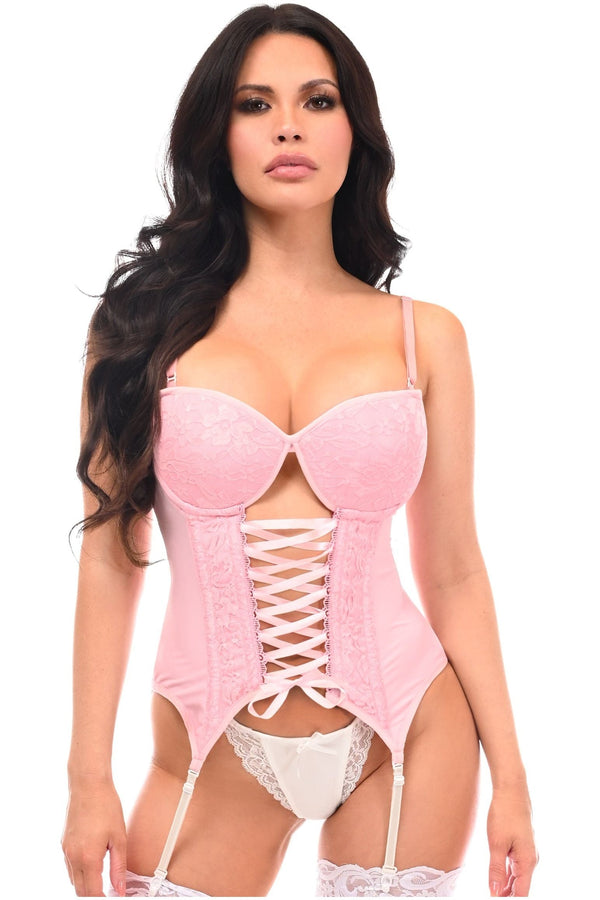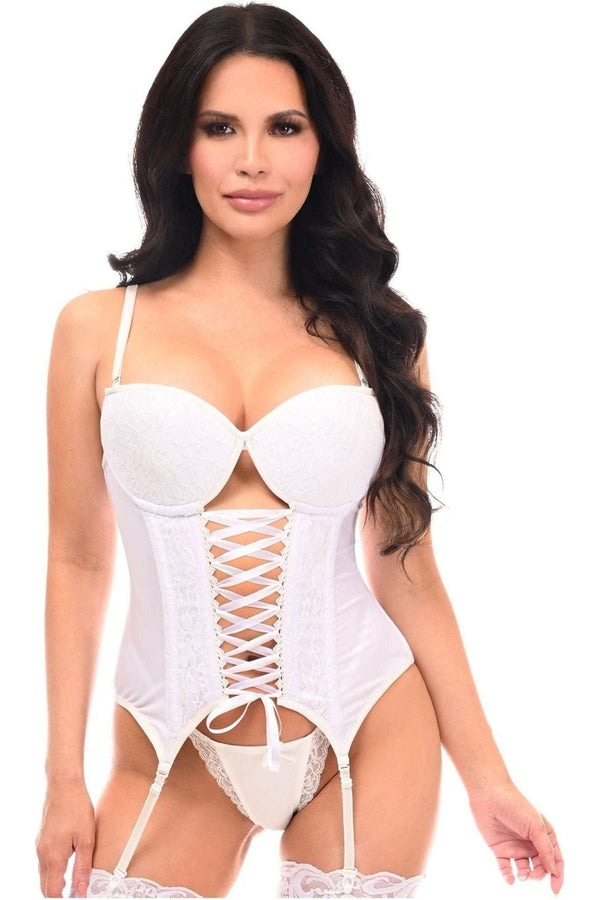 Lavish Red Lycra & Lace Hook & Eye Lace-Up Bustier Corset w/Garters