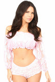 Baby Pink Lined Lace Long Sleeve Peasant Top