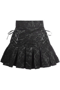 Black Satin w/Black Lace Overlay Lace-Up Skirt