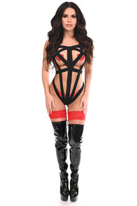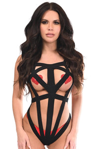 BOXED Black Stretchy Body Harness Bodysuit w/Silver Hardware