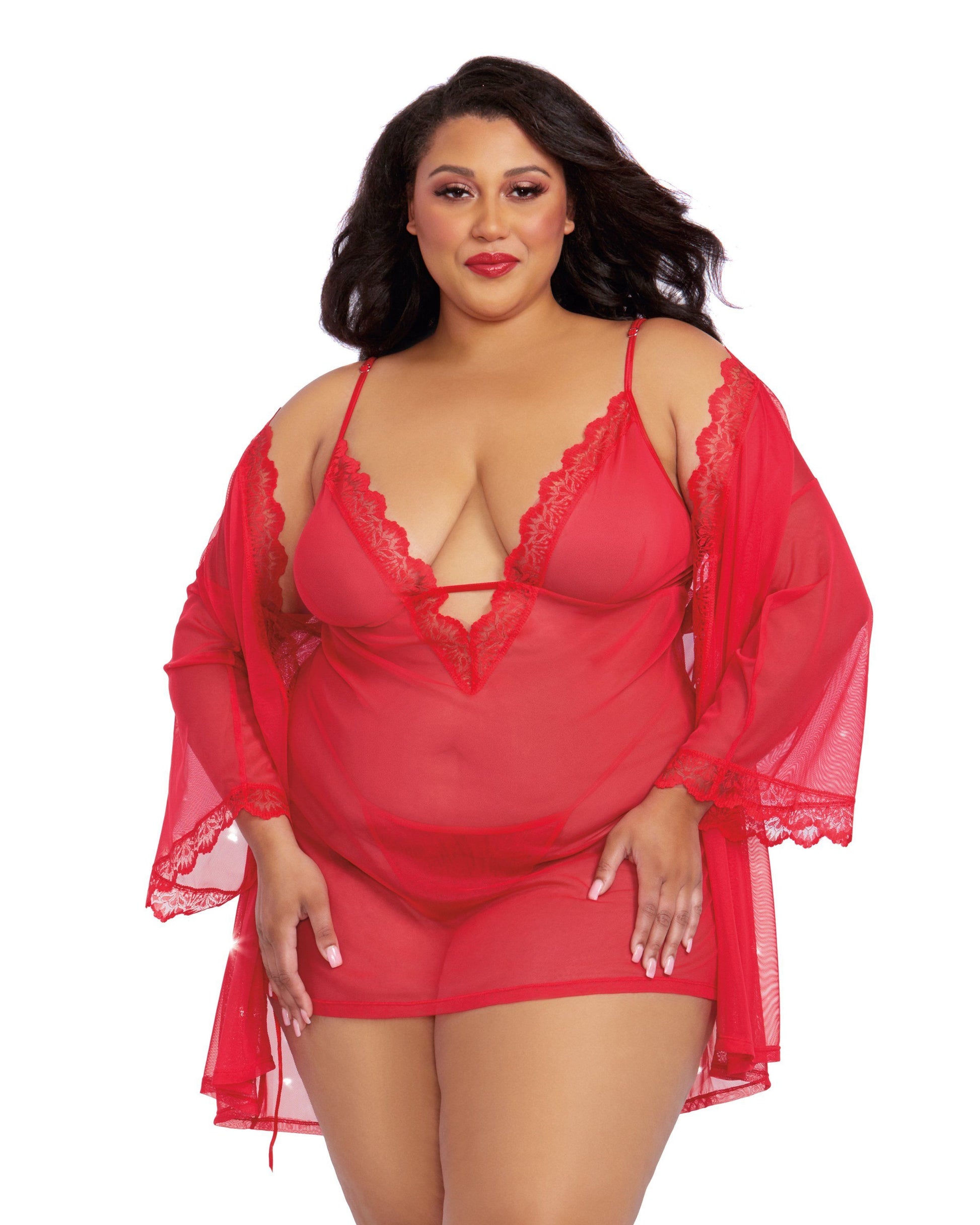 Dreamgirl Plus Size Stretch Mesh Chemise & Robe Set