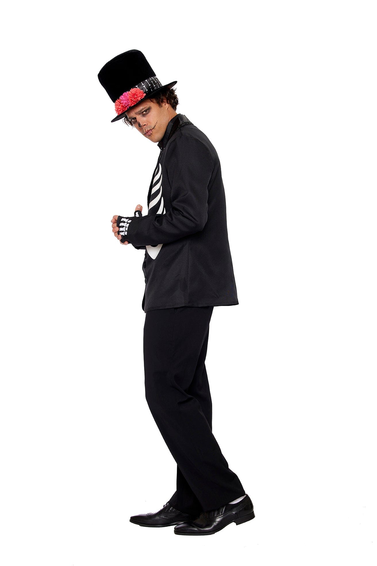 • Tophat with ""bone"" pinstripe printed satin band and flowers