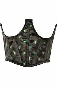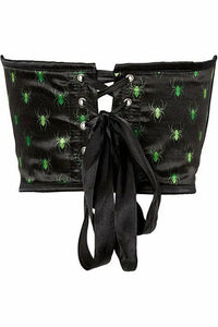 Lavish Black & Green Spiders Satin Open Cup Waist Cincher