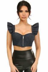 Lavish Blue Denim Underwire Bustier Top w/Removable Ruffle Sleeves