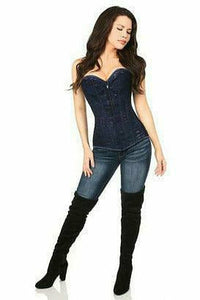 Lavish Navy Blue Lace Overbust Corset w/Zipper