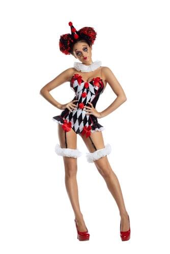 Hand Wash Includes teddy, garters and neckpiece Wig not included Lamé and sequin teddy with pom-poms, bows and garters
