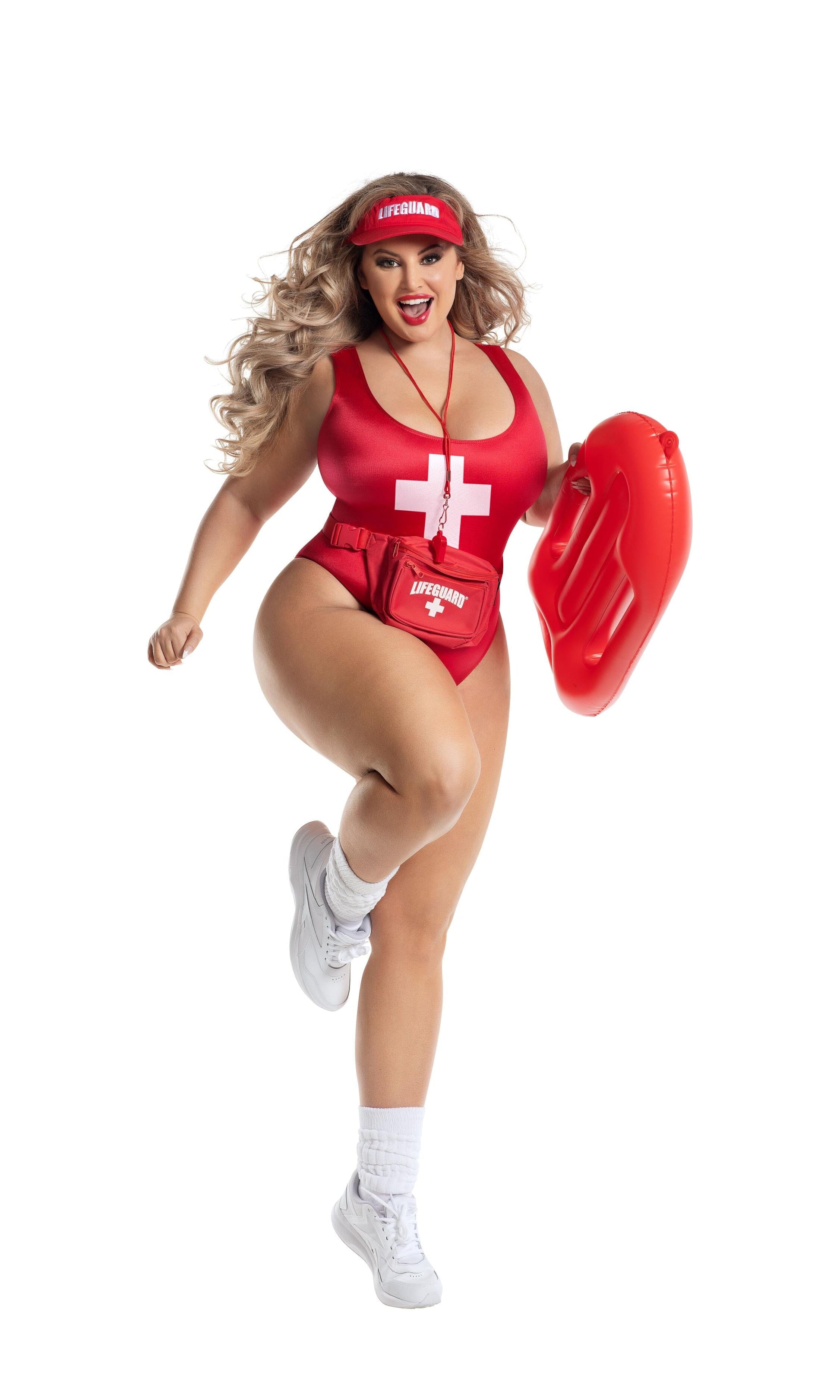 Bae Watch red lifeguard teddy Comes with headpiece, whistle, fanny pack and slouchy socks Lifeguard float not included
