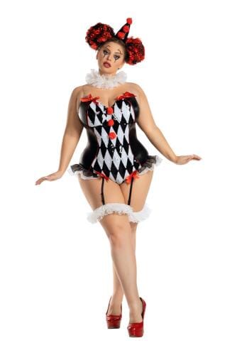 Hand Wash Includes teddy, garters and neckpiece Wig not included Lamé and sequin teddy with pom-poms, bows and garters