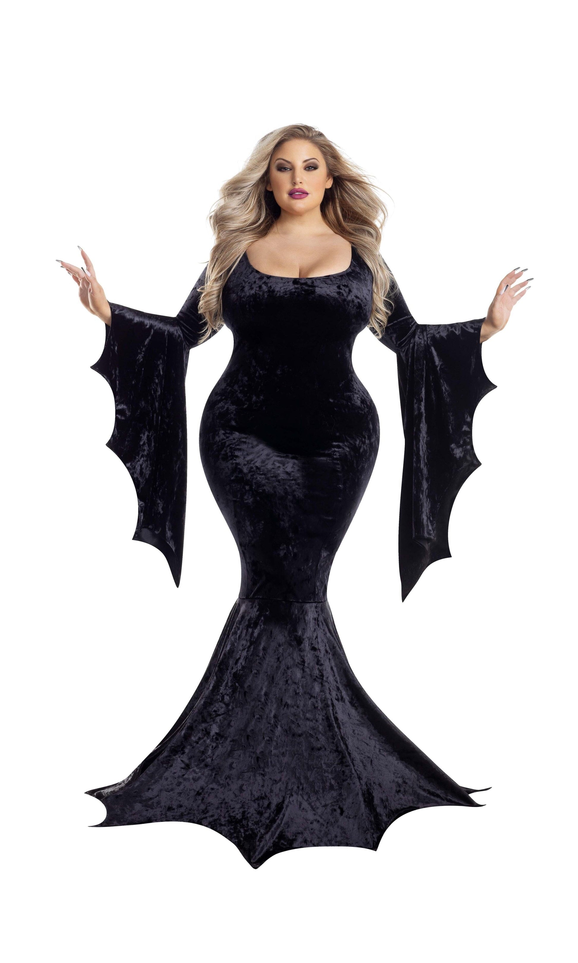 crushed velvet vamp dress with gothic hem and sleeve details.