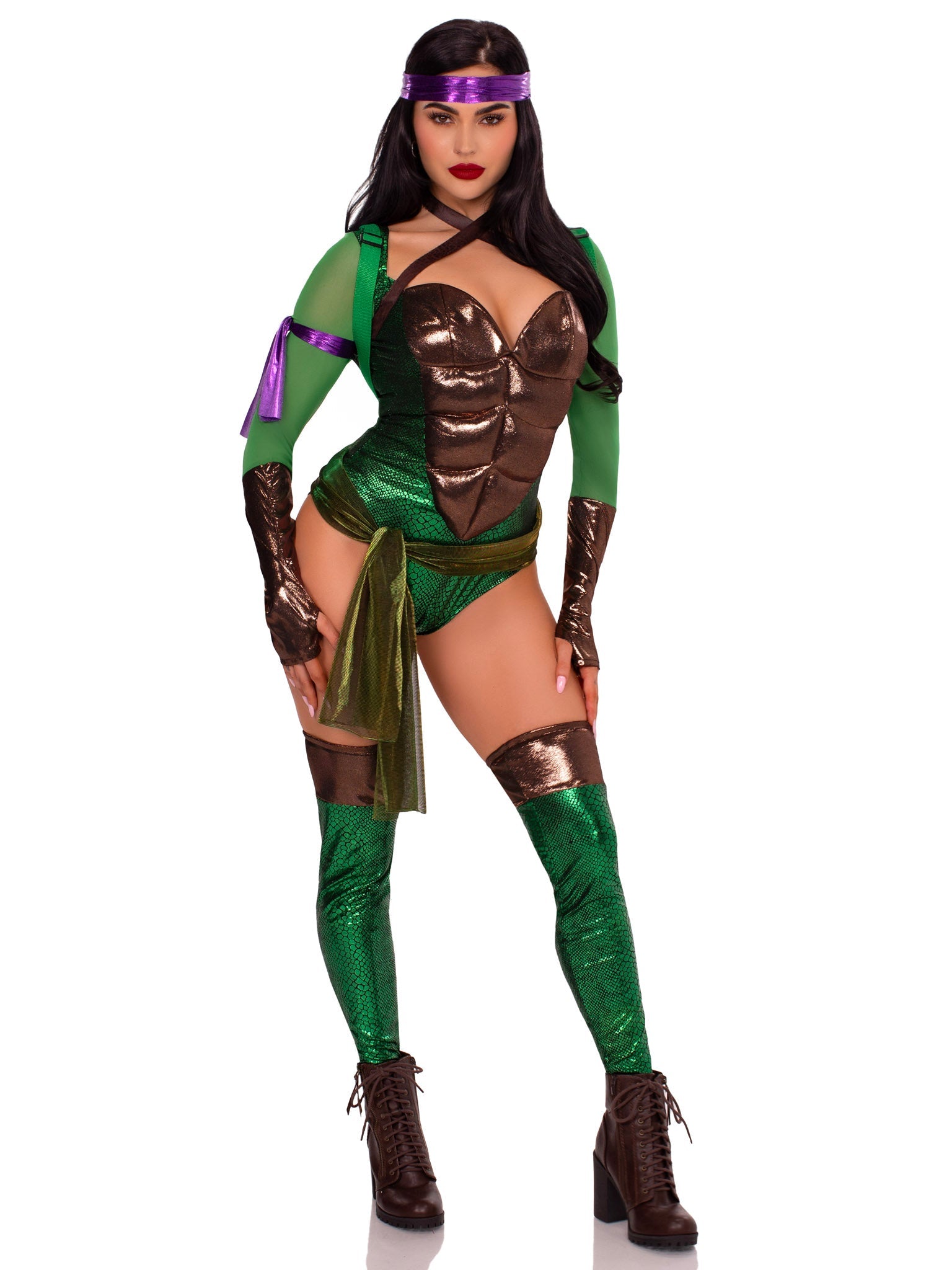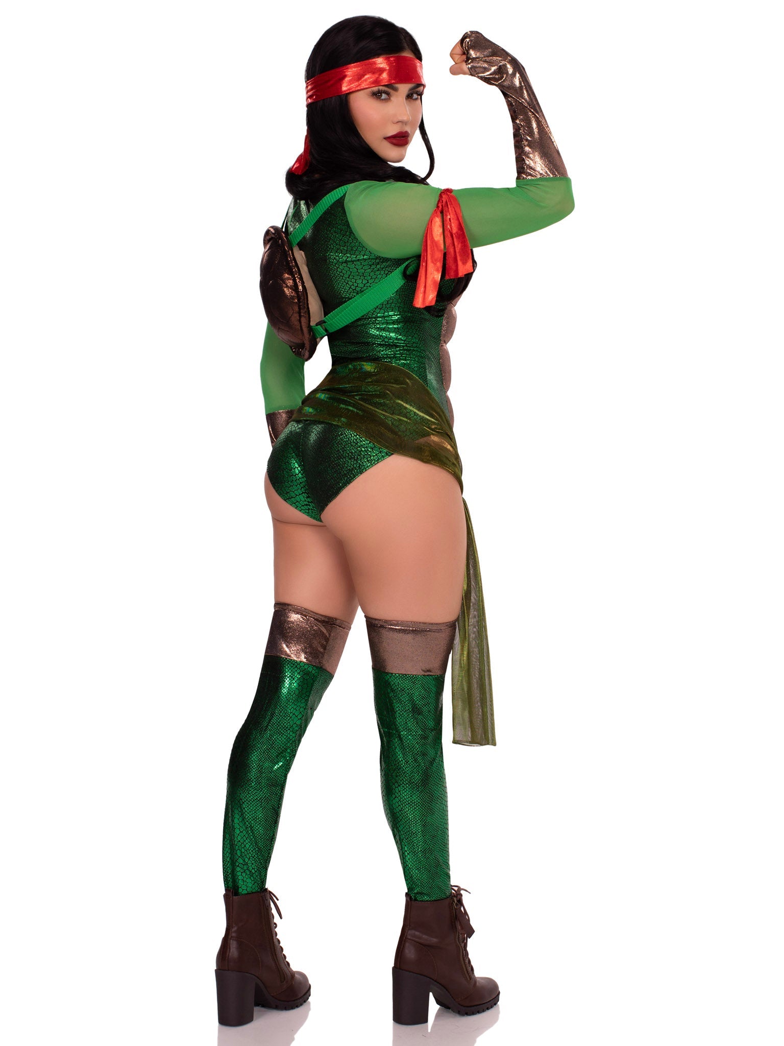 - Fit & Style: The sculpted bodysuit and playful accessories create a curve-loving silhouette with major throwback energy and undeniable turtle attitude