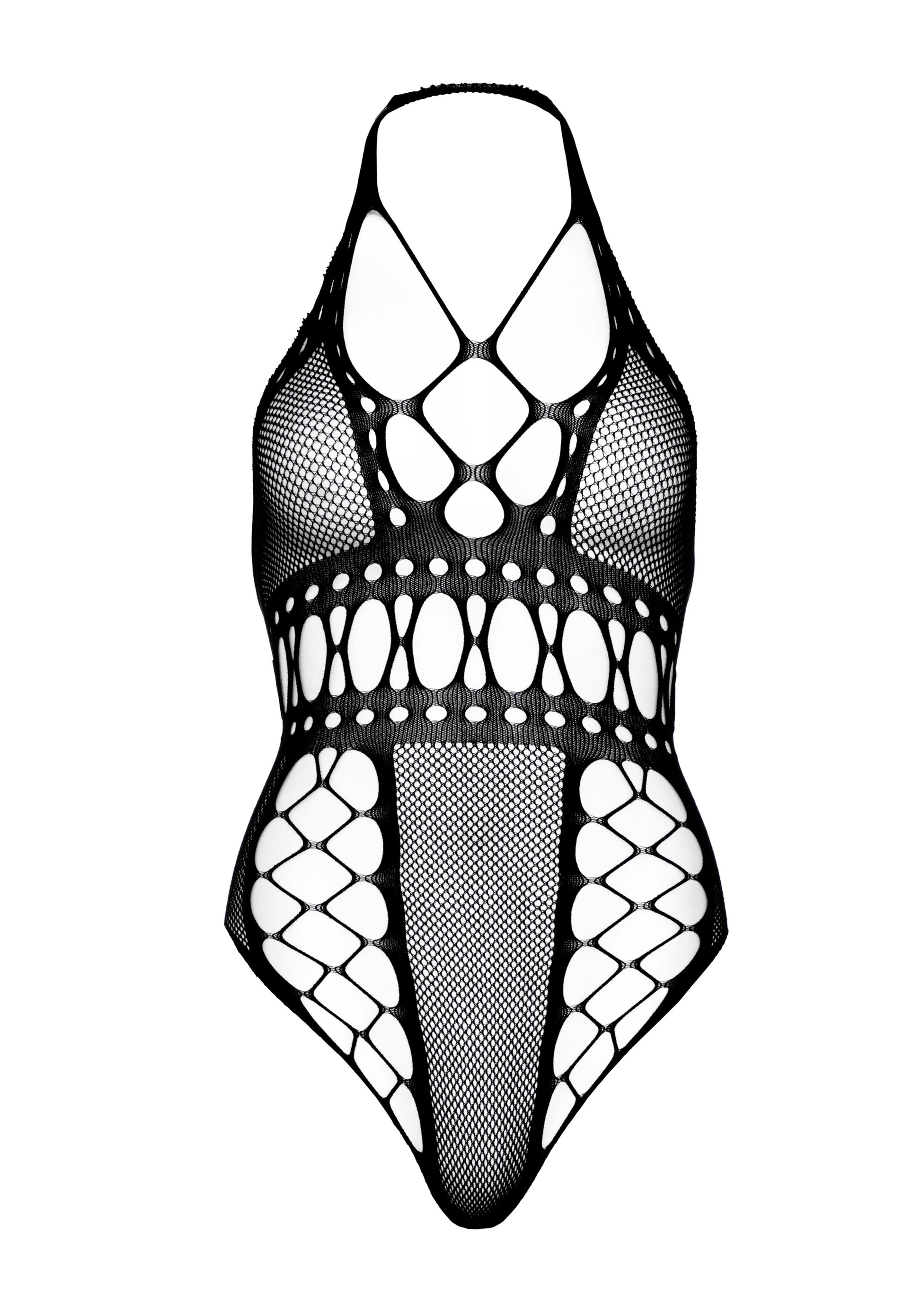 Take their breath away in this ultra-sexy fishnet lingerie teddy by Leg Avenue, featuring a multi-pattern net design, sultry plunging halter neckline, open back, and thong panty bottom. The lingerie bodysuit design makes this a perfect option for layering your black bodysuit with shorts or jeans, throw on some pasties for a sexy rave outfit, or on it own as a hot lingerie look.