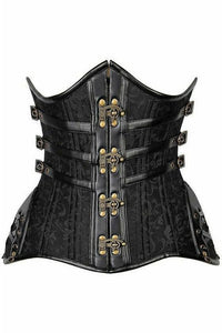 - Under bust corset made of premium faux leather and brocade fabrics and hardware