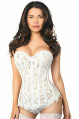 Top Drawer White Lace Steel Boned Corset w/Rhinestones